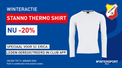 Stanno thermoshirt aanbieding voor alle leden met 20% korting. Via de Intersport Club app. https://www.bolssport.nl/clubkleding/sc-erica/clubkleding